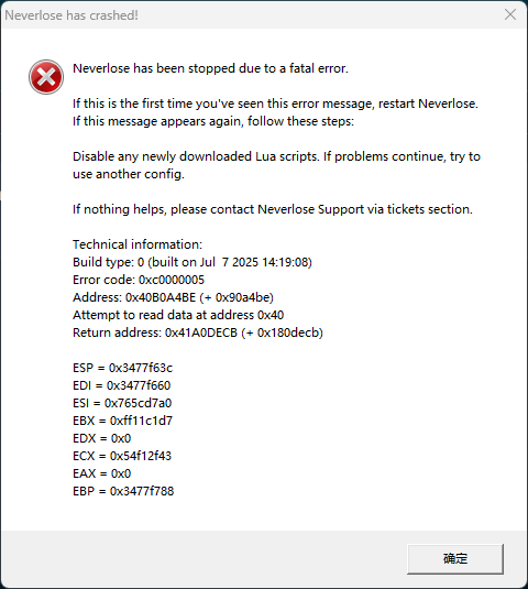 这张图片的则需要需要重新启动注入和启动游戏不要加载新的cfg(参数)和lua否则会弹出此弹窗
