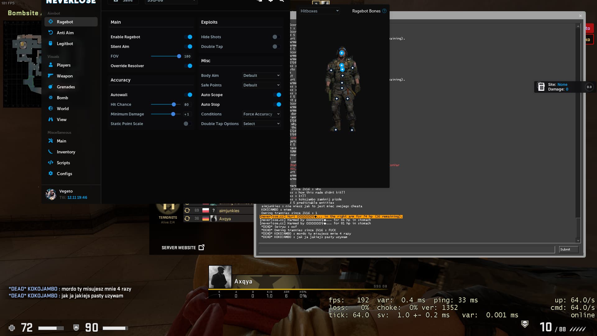 Back when cheat is still private there was a bug zeusbot ignores hitchance and minimum damage and has broken range i created post about it and got deleted. idk if devs playing hvh too but if they do they probably gonna fix it after they had the same issue