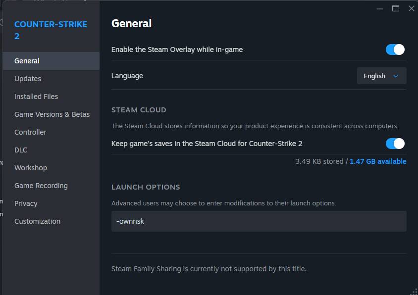And add it to the shortcut with -ownrisk.
