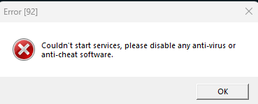 оффни все антивирусы или античиты например ач фейсита и тд